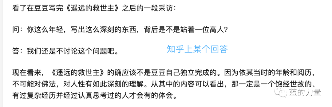 看《遥远的救世主》是因为去年视频号一直给我推《天道》的剪辑片段,其中的台词让我觉得好奇,如此充满思辨的台词,跟现在娱乐化的连续剧相比应该算是干涩乏味了。看视频太费时间,我就买了原著回来看。我觉得《天幕红尘》更有意思些,立意更高,格局更大。《遥远的救世主》是通过主人公一次商业操盘,带出其对商业、对佛法的理解和人性的思考;《天幕红尘》则是通过主人公一次仗义行为,带出其对中西方政治发展路径、体制、马克思共产主义思想、佛道在世间的实践等方面的思考,其中几个章节的对话很精彩,其观点放到现在这个时间点(中美关系紧张、世界格局不稳)非常应景,就好像作者在十年前对现在的局势进行了一番点评。在阅读的过程中,我能感觉到,这两本小说不是专业作家所写,它的产生不是职业作家讲故事的欲望推动的,而是先有了对商业、政治、世界格局等种种的见解,为了让这些深刻又略微枯燥的见解被人读懂,才架构了一个故事,通过情节推动,主人公的对话,将这些观点阐述出来。为此我也对豆豆这位女性作家产生疑问,这个领域,非常少女性作家涉及,更不用说其观点如此深刻了。看完两本书,我去查了一番,不出所料,据传此书背后有高人,我推断最初写这本书的立项,应该也是高人发起。